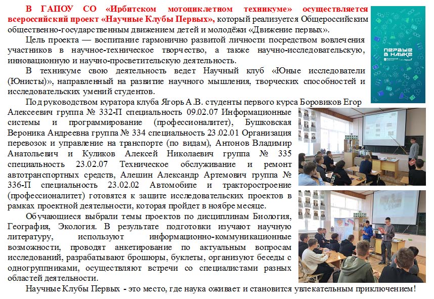 ПРИКАЗ № 253-од от 17.09.2025 г. О персональном составе Научного клуба Юнисты первичного отделения «Движение Первых» ГАПОУ СО «ИМТ»